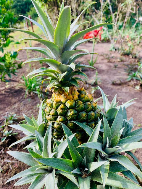 Explore a paradise where vibrant heliconia and amaryllis bloom alongside productive citrus trees, mountain pineapples and orchids, drawing numerous birds, hummingbirds and butterflies to this living tapestry.